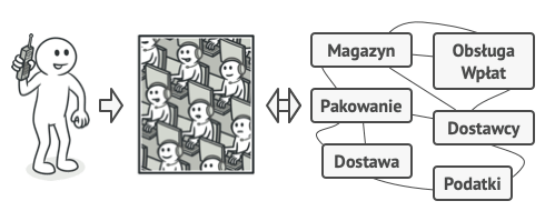 Gdy dzwonisz do sklepu aby złożyć zamówienie, biuro jest twoją fasadą dla wszystkich usług i oddziałów tego sklepu. Pracownik sklepu, czy automat zgłoszeniowy, stanowią prosty interfejs głosowy do systemu zamawiania, płacenia i różnych usług dostawczych.
