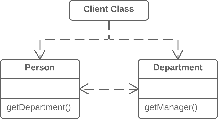 A call chain appears when a client requests an object from another object, then the second object requests another one, and so on. These sequences of calls involve the client in navigation along the class structure. Any changes in these interrelationships will require changes on the client side.