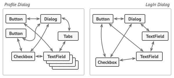 In our example with the profile editing form, the dialog class itself may act as the mediator. Most likely, the dialog class is already aware of all of its sub-elements, so you won’t even need to introduce new dependencies into this class.